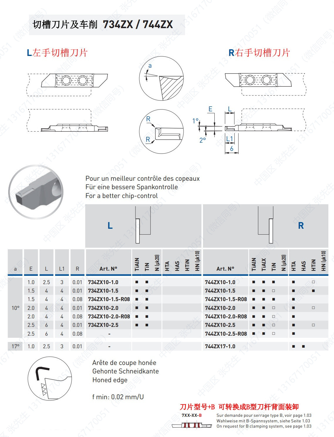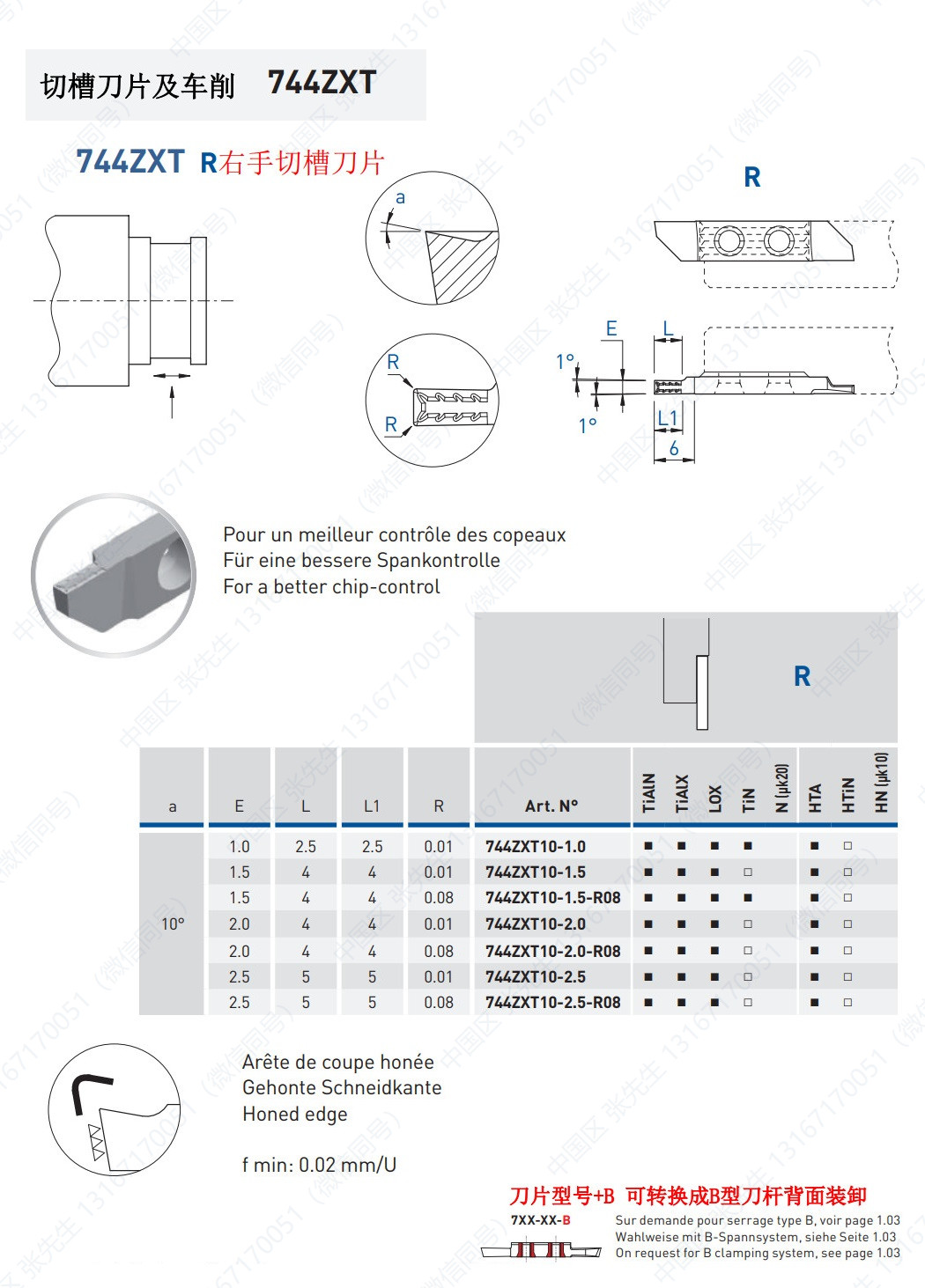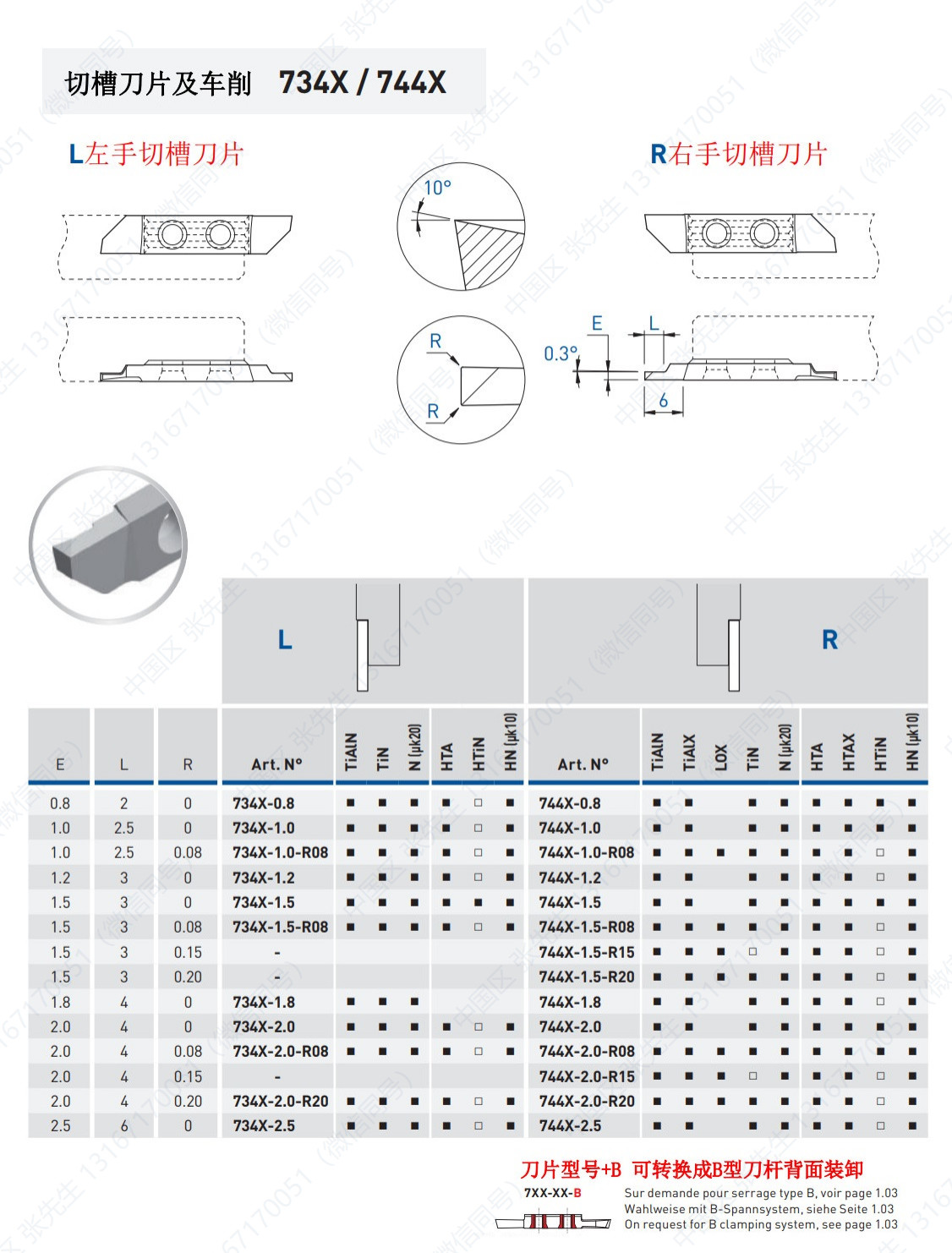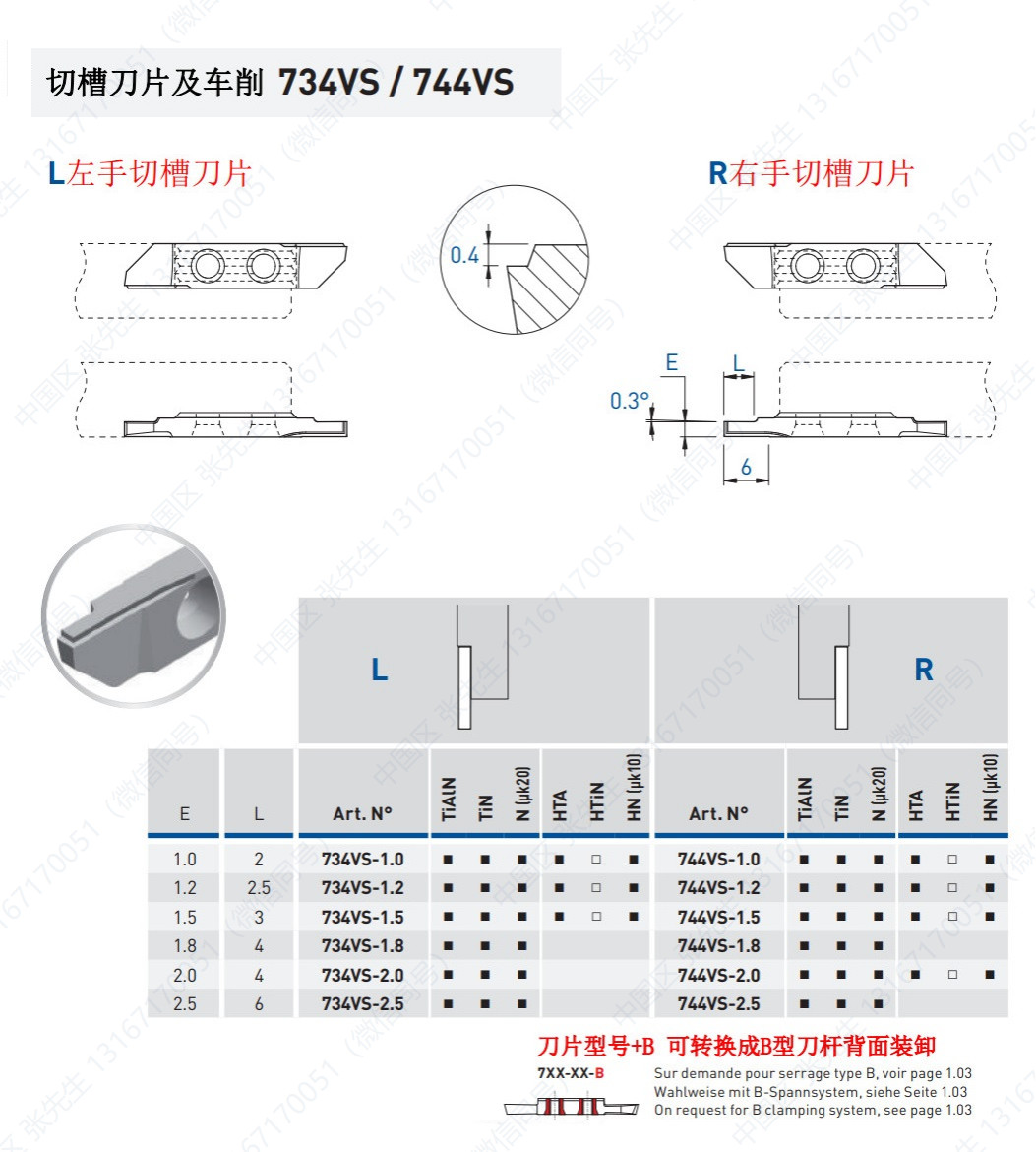 754/764/VS/X/X5/X10-EP/XZ/ZXB/ZXT 切槽刀片及车削