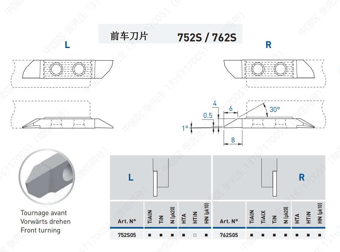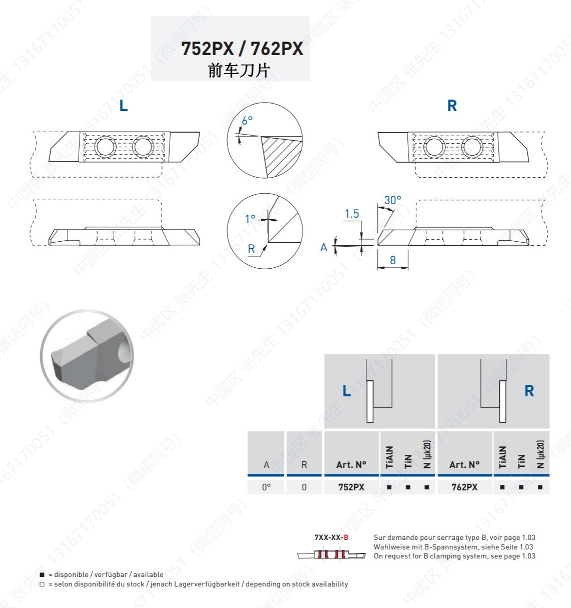 754/764/VS/X/X5/X10-EP/XZ/ZXB/ZXT 切槽刀片及车削
