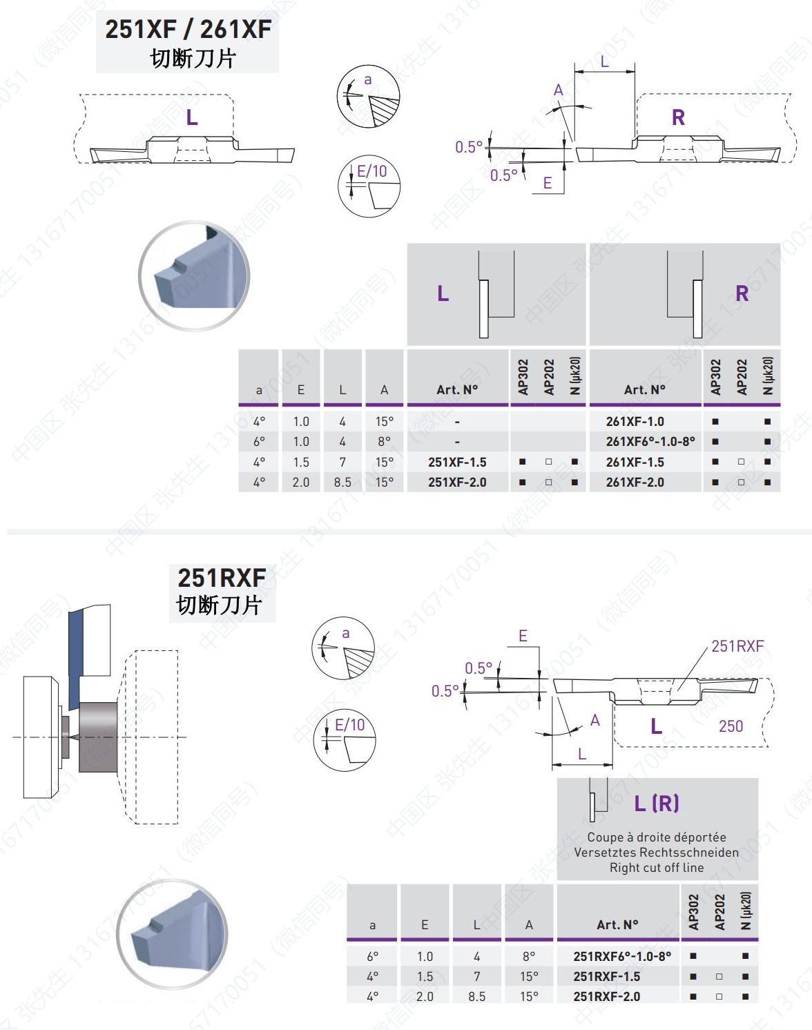 754/764/VS/X/X5/X10-EP/XZ/ZXB/ZXT 切槽刀片及车削
