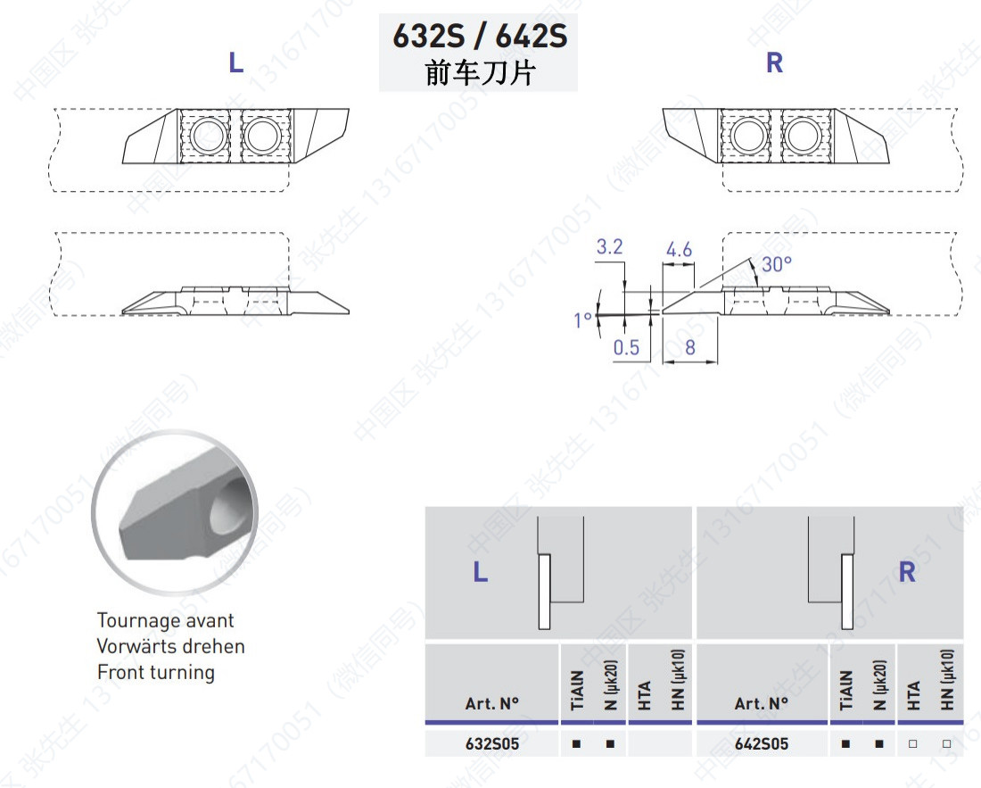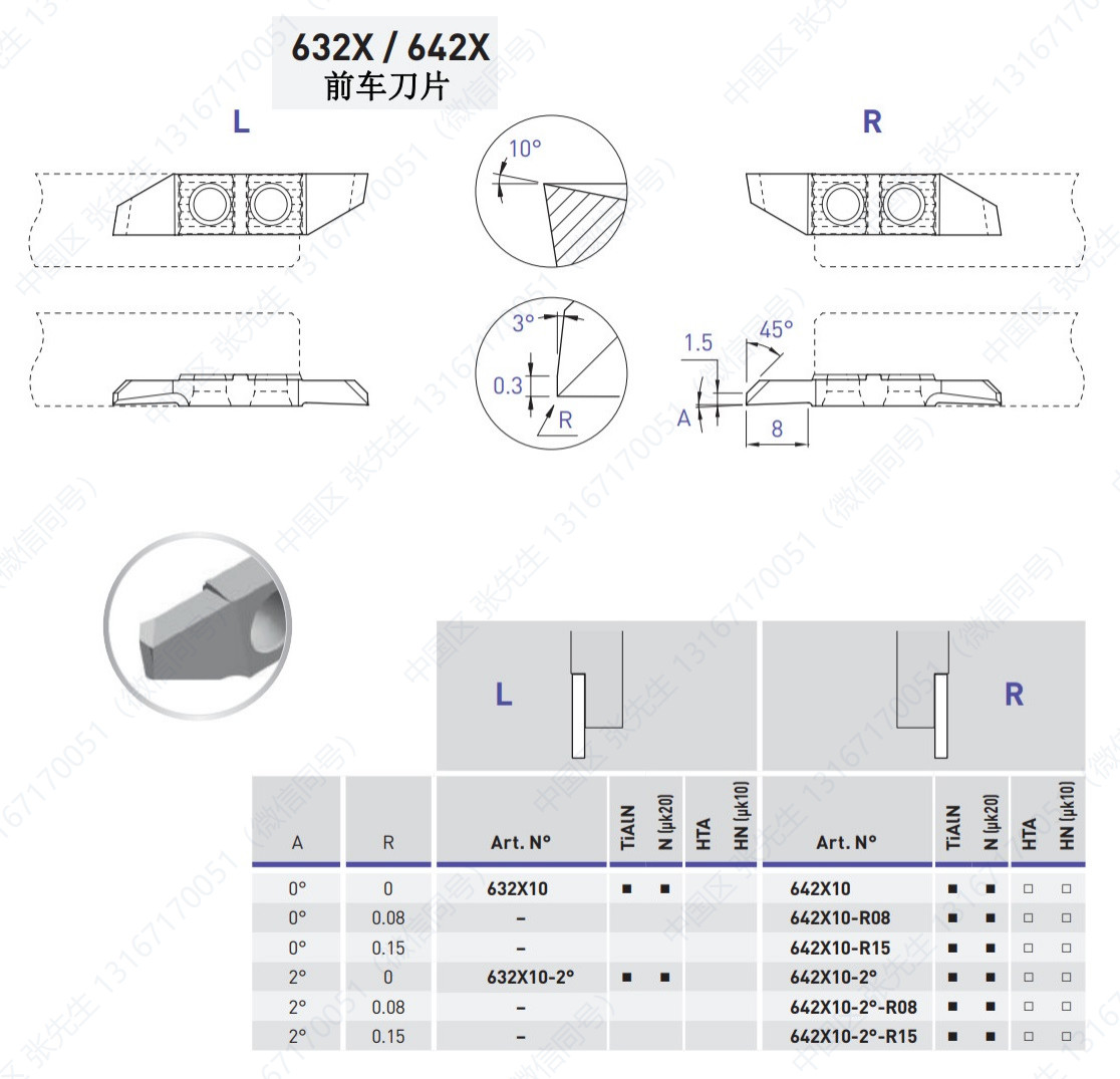 754/764/VS/X/X5/X10-EP/XZ/ZXB/ZXT 切槽刀片及车削