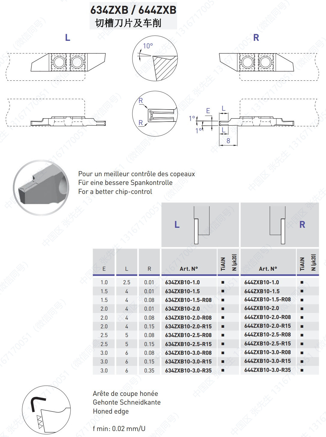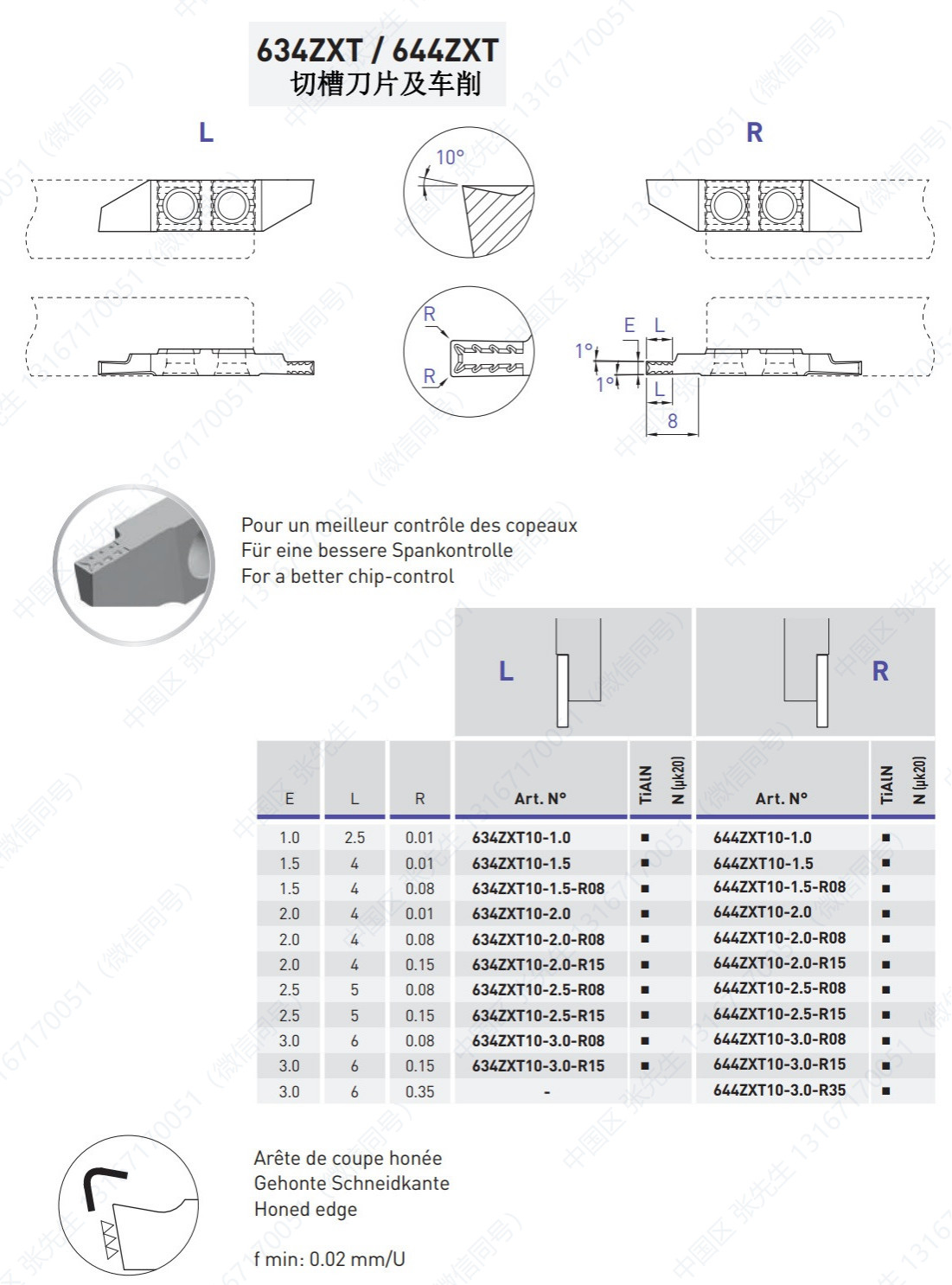 754/764/VS/X/X5/X10-EP/XZ/ZXB/ZXT 切槽刀片及车削